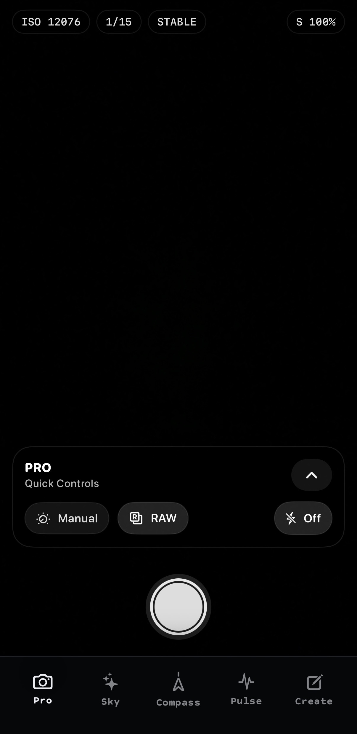 Manual + RAW capture controls built for low-light and night-sky work.